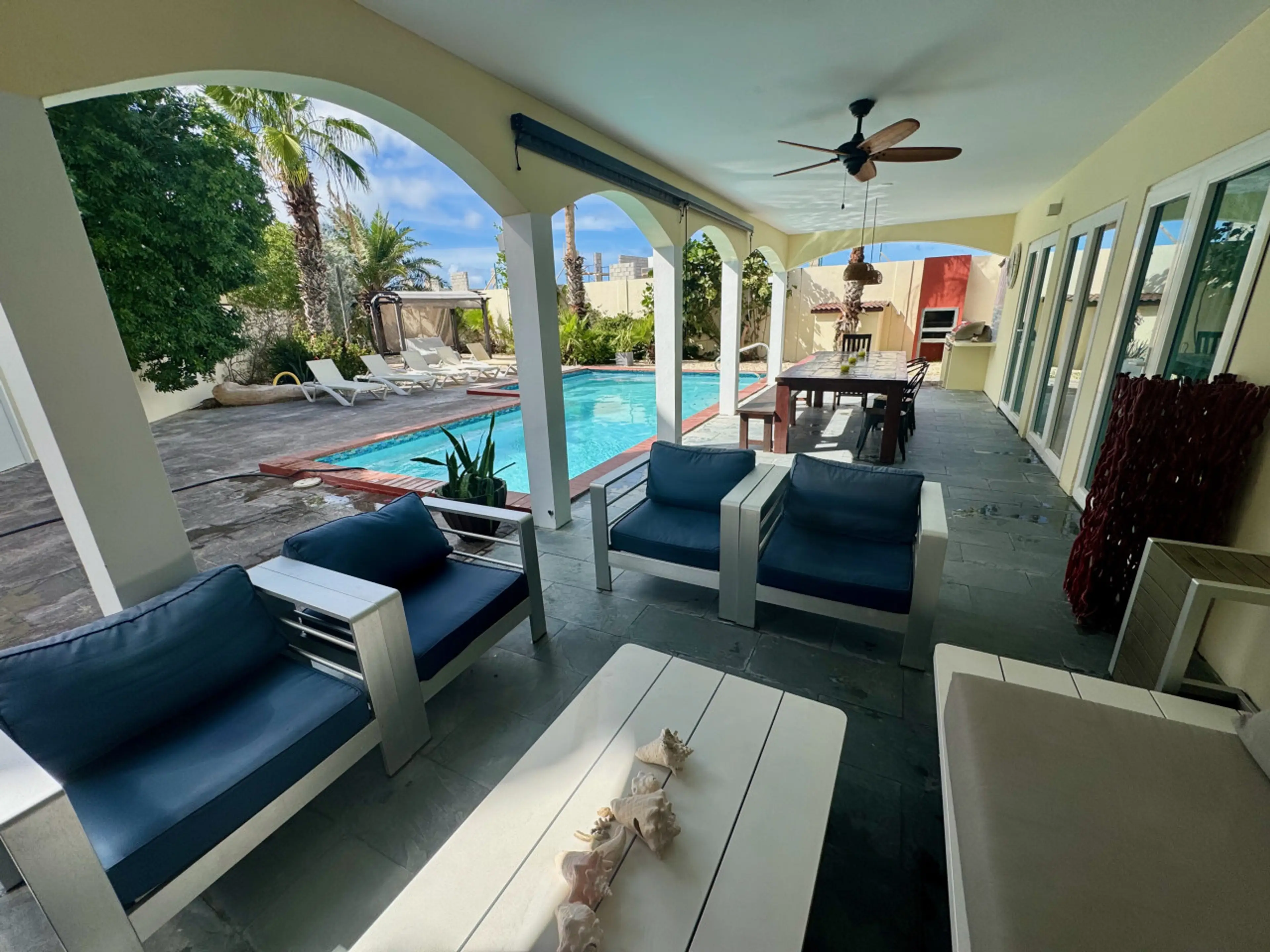 The Deluxe 7 Bedroom Villa with ensuite bathrooms and private Pool is a 3000 sq. ft. private villa with a spacious garden offering a large pool with lounge chairs, furnished shaded terrace(s) with lounge set, dining set and built-in gas and charcoal BBQ: ideal for outside lounging, relaxing and dini...
